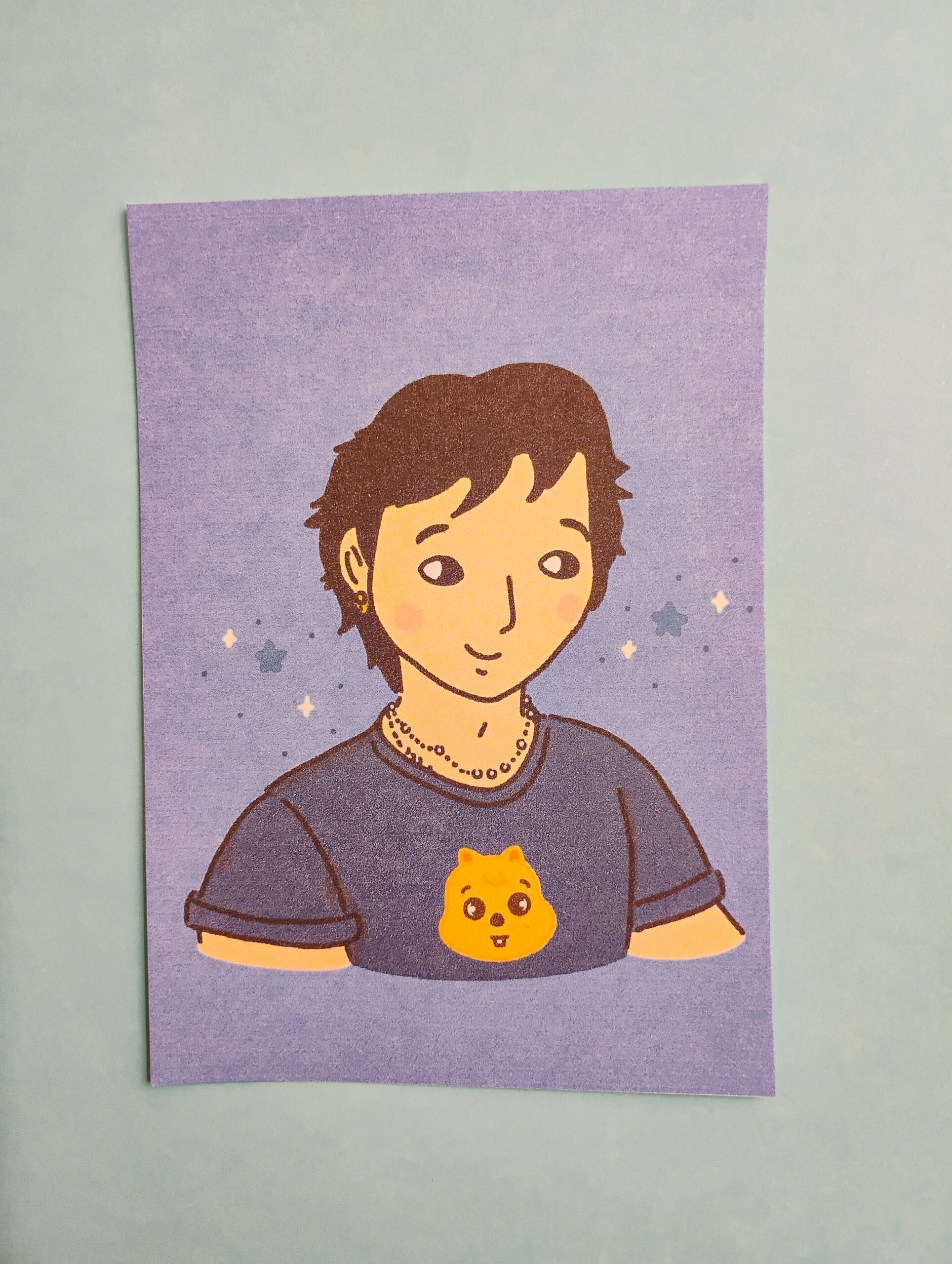 4″x 5.5″ Standard colored Matte print, includes a sticker pack of 8 matte stickers, varying in size and design.